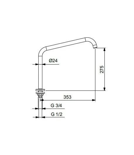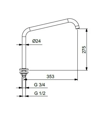Bocca di erogazione girevole in tubo d.24 per installazione su piano