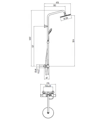 COLONNA DOCCIA, Termostatico esterno con rampa tagliabile