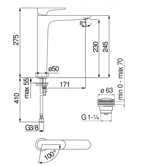 Portata max piletta 24 lt/min.