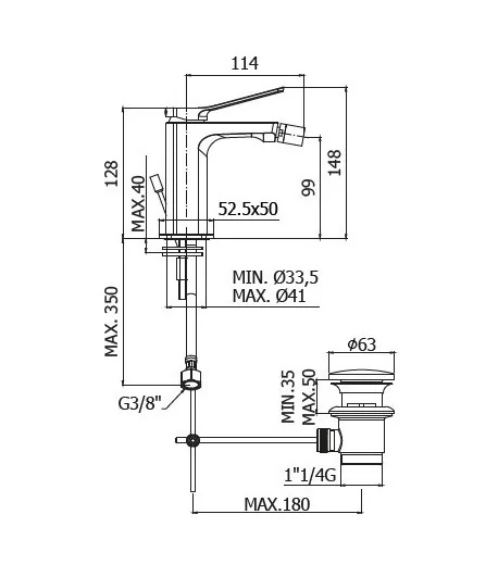 Miscelatore bidet con scarico 1”1/4