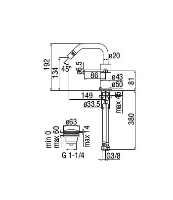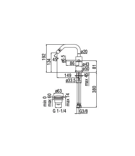 Miscelatore monocomando per bidet con scarico up & down; con flex inox cm 37 att. 3/8” F.