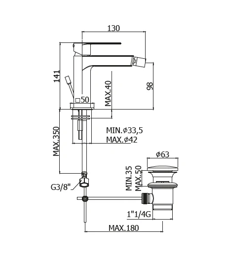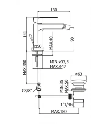 Miscelatore monocomando per bidet con scarico up & down; con flex inox cm 37 att. 3/8” F.