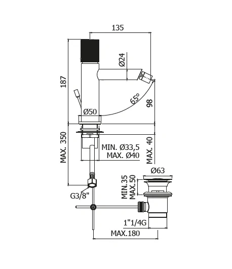 Leva completa Ø40 mm per artt. 071-071K-075-081-081K-085-131-131K-135