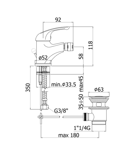 Miscelatore monocomando per bidet con scarico up & down; con flex inox cm 37 att. 3/8” F.