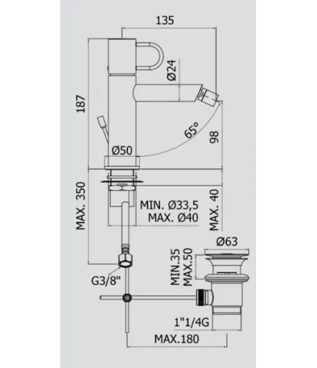 Leva completa Ø40 mm per artt. 071-071K-075-081-081K-085-131-131K-135