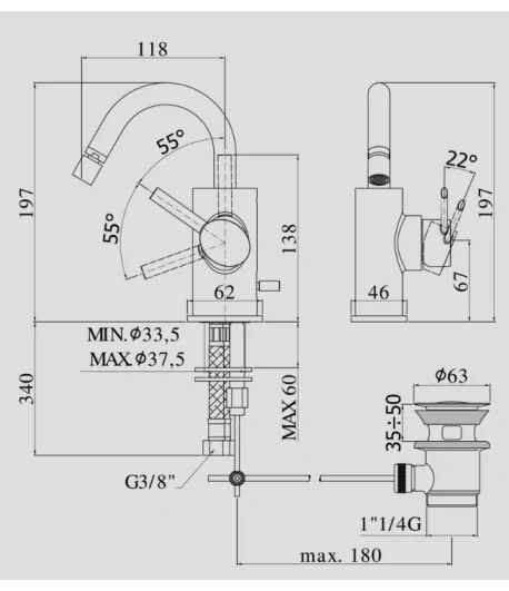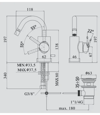 Miscelatore bidet con scarico automatico e flex inox di alimentazione