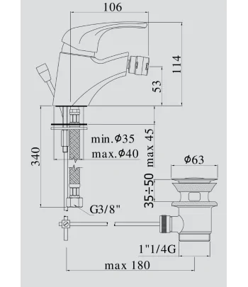 Miscelatore monocomando per bidet con scarico up & down; con flex inox cm 37 att. 3/8” F.