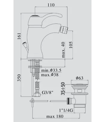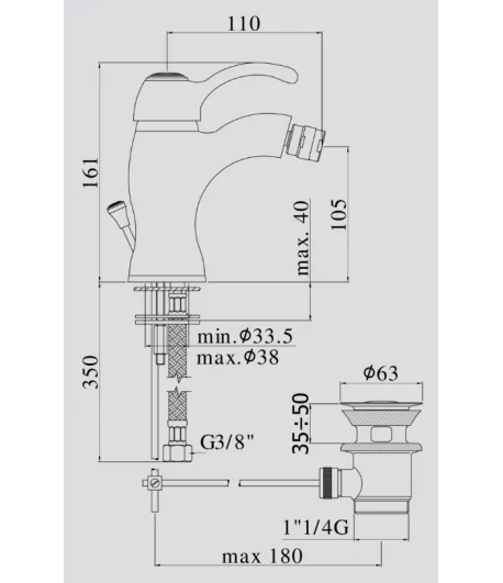 Miscelatore monocomando per bidet con scarico up & down; con flex inox cm 37 att. 3/8” F.