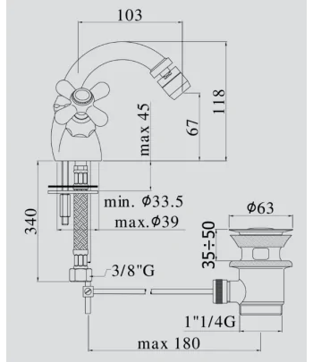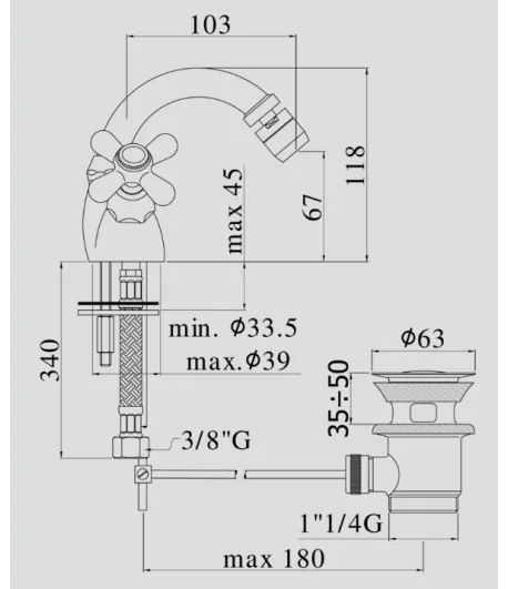 Miscelatore monocomando per bidet con scarico up & down; con flex inox cm 37 att. 3/8” F.