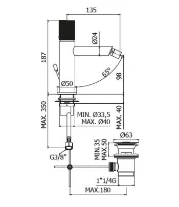 Leva completa Ø40 mm per artt. 071-071K-075-081-081K-085-131-131K-135