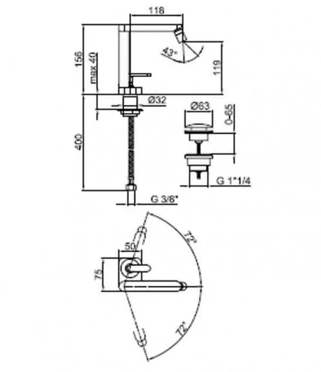 Miscelatore monocomando per bidet con scarico up & down; con flex inox cm 37 att. 3/8” F.