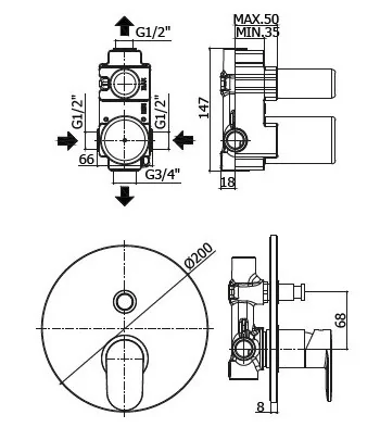 Miscelatore incasso doccia (3 uscite) con