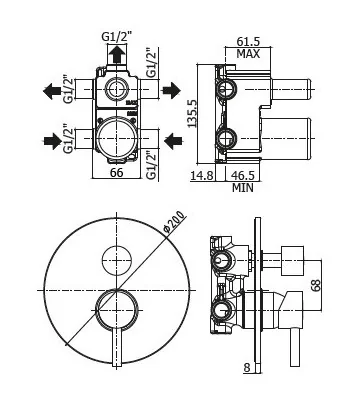 Miscelatore incasso 2 vie con deviatore manuale completo di scatola universale GBOX