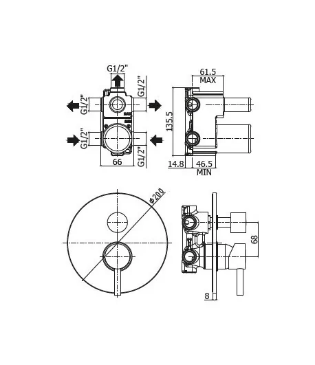 con cartuccia deviatore (2 uscite + 1 posizione combinata)
