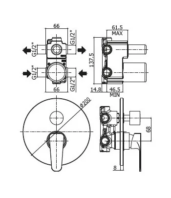 con cartuccia deviatore (2 uscite + 1 posizione combinata)