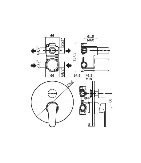 con cartuccia deviatore (3 uscite + 3 posizioni combinate)