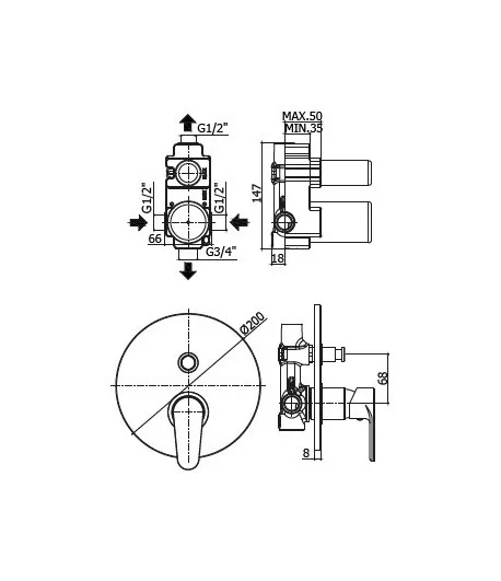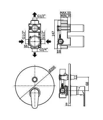 Miscelatore incasso 2 vie con deviatore completo di scatola universale GBOX - Ø 160 MM