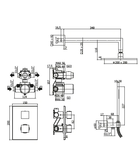 Miscelatore monocomando per doccia incasso, con piastra, senza flessibile ,doccetta e gancio
