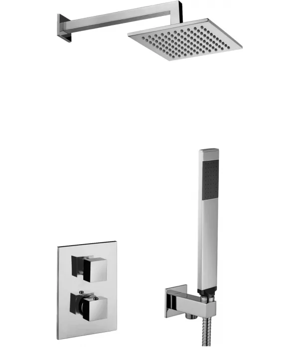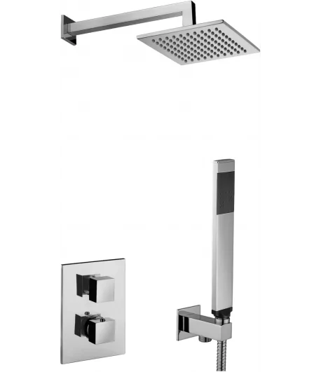 Il set doccia è un soluzione completa per il bagno, offre un pacchetto dedicato all'ambiente doccia, è solitamente composto da un miscelatore per doccia, un soffione con braccio a muro e una presa acqua completa di doccetta e flessibile