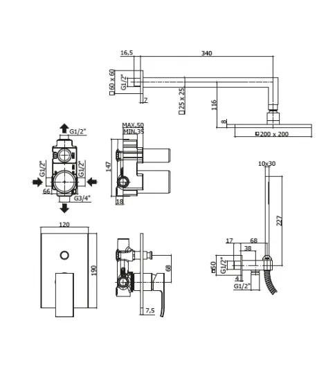 Miscelatore incasso doccia con doccetta shut-off e scatola ispezionabile