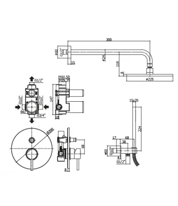 Miscelatore incasso 2 vie con deviatore - Ø 160 MM