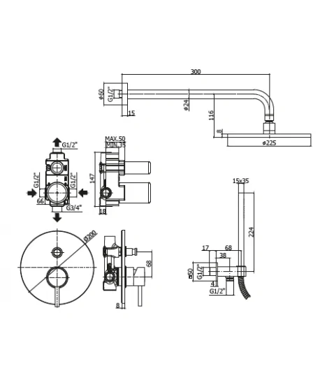 Il set doccia è un soluzione completa per il bagno, offre un pacchetto dedicato all'ambiente doccia, è solitamente composto da un miscelatore per doccia, un soffione con braccio a muro e una presa acqua completa di doccetta e flessibile
