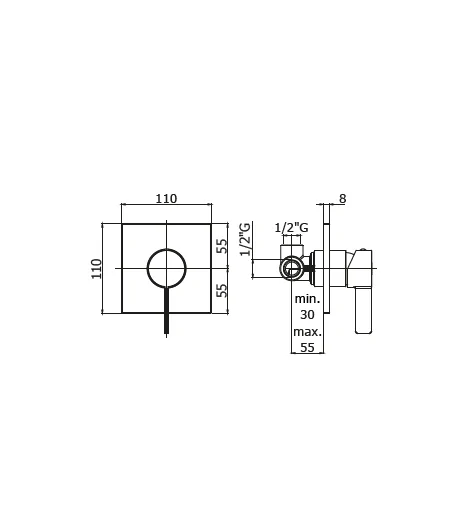 COPPIA DI RUBINETTI D'ARRESTO A INCASSO PER DOCCIA