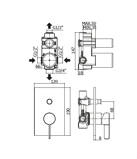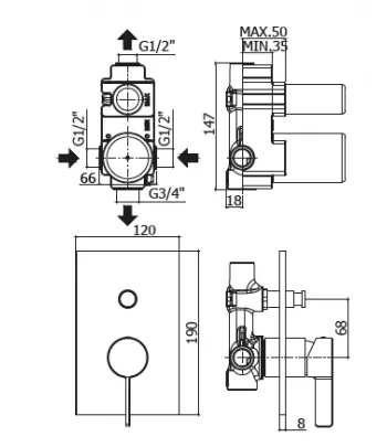 Miscelatore incasso 2 vie con deviatore manuale completo di scatola universale GBOX