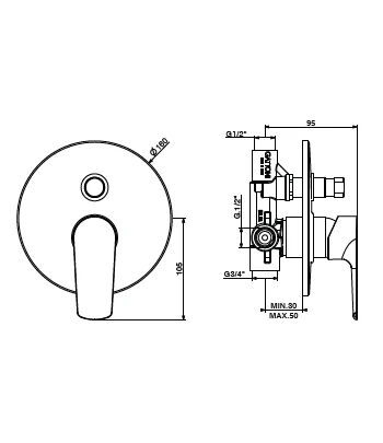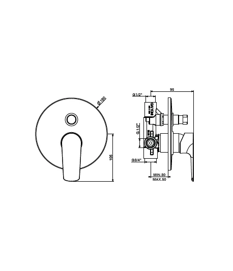 Miscelatore incasso 2 vie con deviatore - Ø 160 MM