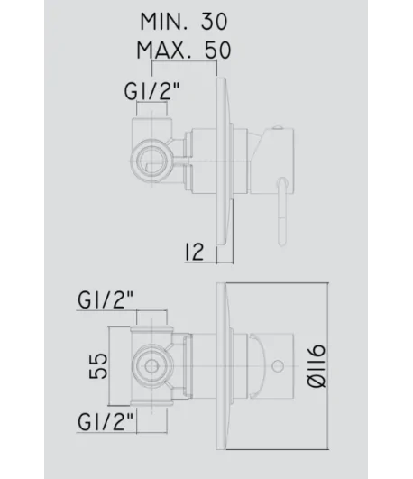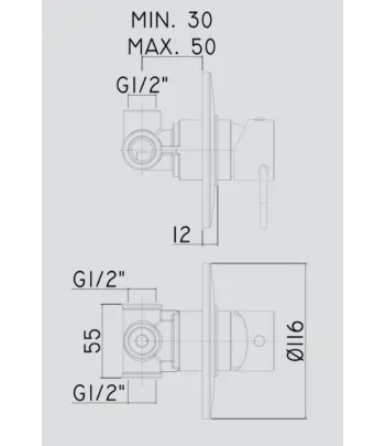 Miscelatore incasso 2 vie con deviatore - Ø 160 MM