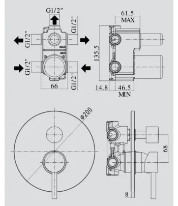Miscelatore incasso doccia (3 uscite) con