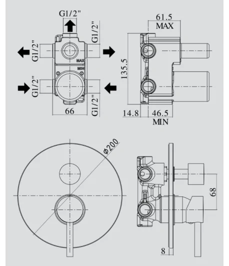 Miscelatore incasso doccia completo di scatola universale GBOX - Ø 110 mm