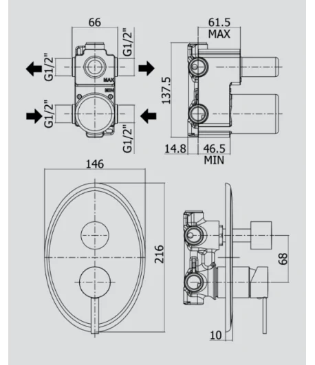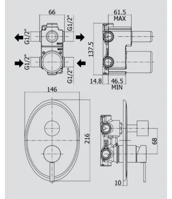 Ingresso acqua calda e acqua fredda ø 1/2”