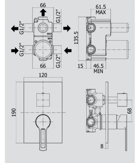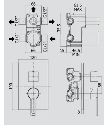 Miscelatore incasso 2 vie con deviatore completo di scatola universale GBOX - Ø 160 MM