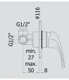 attacchi calda/fredda e superiore 1/2”G - attacco inferiore 3/4”G
