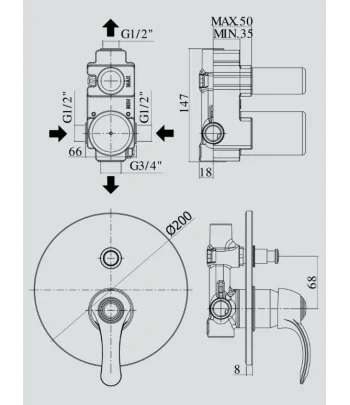 Miscelatore incasso doccia (3 uscite) con