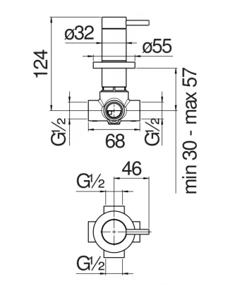 attacchi calda/fredda e superiore 1/2”G - attacco inferiore 3/4”G