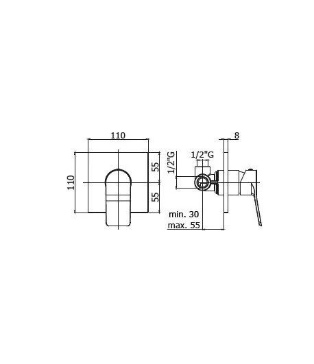 Miscelatore incasso 2 vie con deviatore manuale completo di scatola universale Gbo x - 150x90 MM