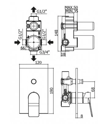 Miscelatore incasso 2 vie con deviatore completo di scatola universale GBOX - Ø 160 MM