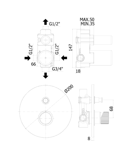 attacchi calda/fredda e superiore 1/2”G - attacco inferiore 3/4”G