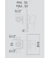 attacchi calda/fredda e superiore 1/2”G - attacco inferiore 3/4”G