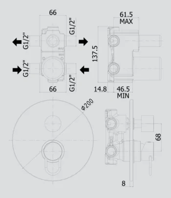 con cartuccia deviatore (3 uscite + 3 posizioni combinate)