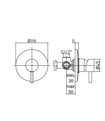 DOCCIA, PARTE ESTERNA MONOCOMANDO INCASSO A 2 VIE