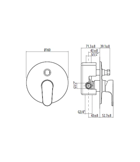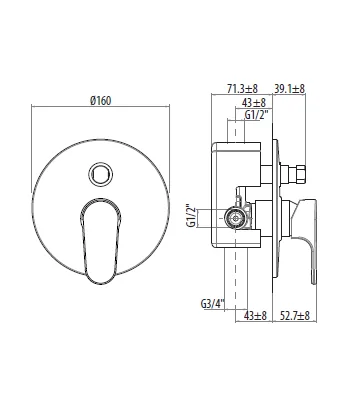Miscelatore incasso 2 vie con deviatore - Ø 160 MM