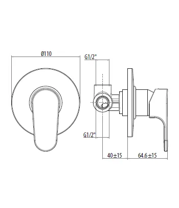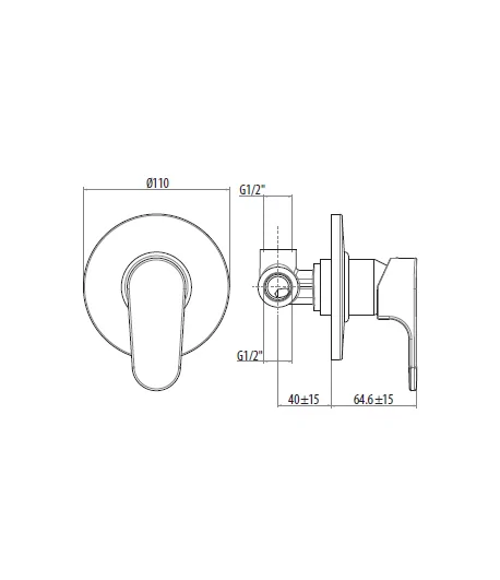 Miscelatore incasso doccia a una via con rosone diam. 110 mm, completo di scatola universale GBOX