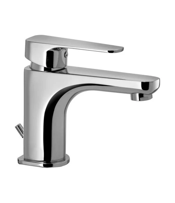 Miscelatore lavabo con piletta regolabile con tappo a scatto, flex inox di alimentazione, bocca 135 mm