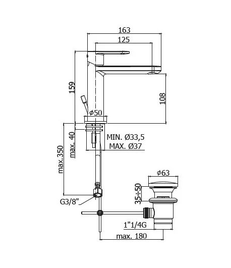 Miscelatore lavabo con scarico 1”/4