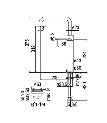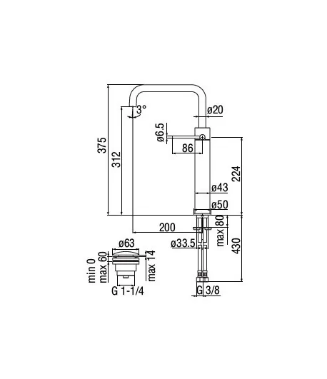 Miscelatore monocomando per lavabo con scarico up & down; con flex inox cm 37 att. 3/8” F.