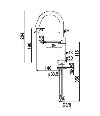 Miscelatore lavabo con canna orientabile con