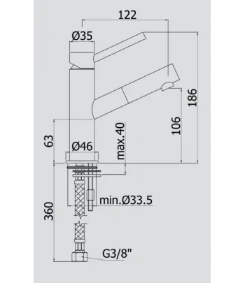 Miscelatore lavabo con piletta regolabile con tappo a scatto, flex inox di alimentazione, bocca 160 mm.